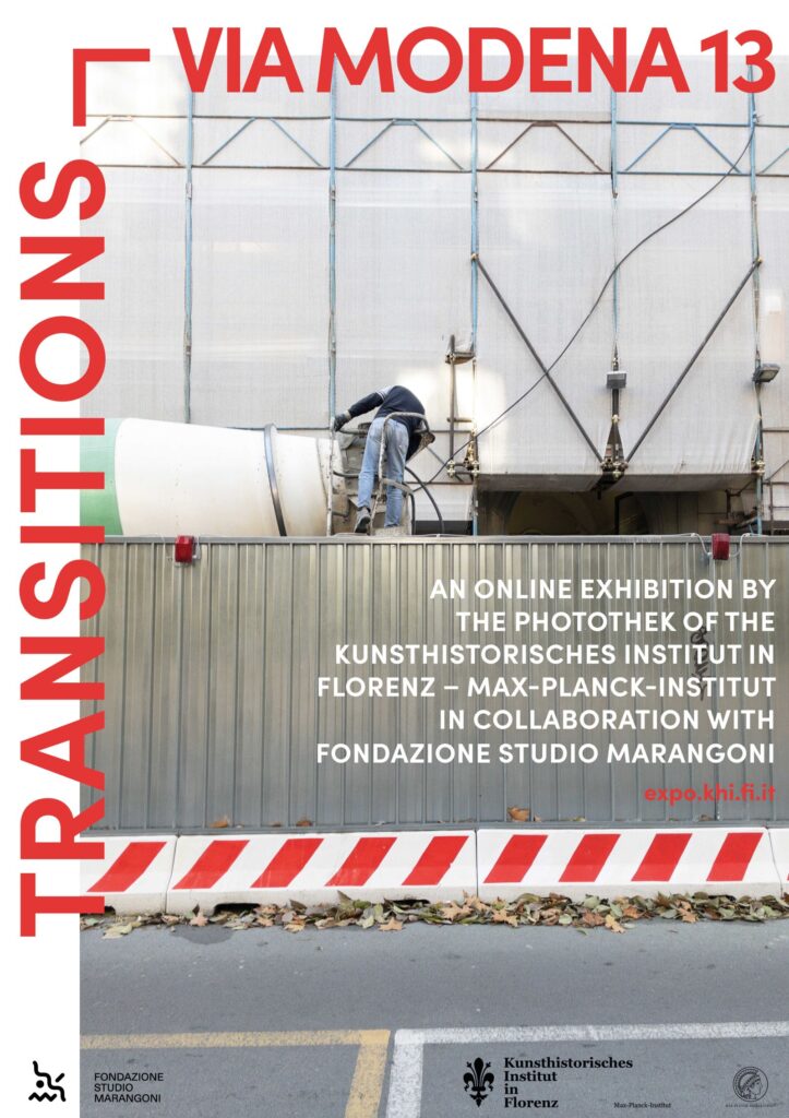 In the run-up to the opening of a new building for the Kunsthistorisches Institut in Florenz – Max-Planck-Institut at Via Gustavo Modena 13, the Photothek is presenting a new online exhibition starting on October 14, 2024, with photographs by Martino Marangoni, Bärbel Reinhard, Daniela Tartaglia, and Giuseppe Toscano. These four photographers and lecturers from the Fondazione Studio Marangoni documented the conversion of a residential building built at the turn of the 20th century into a modern research facility. Over the course of several years they photographed the ongoing project: from the beginnings of works in 2021 to their completion in 2023 and the subsequent move in spring 2024. Since then the Photothek, some sections of the Library (including the ‘Photography Reference Library’), the Lise Meitner Group Coded Objects and the Research Group Ethico-Aesthetics of the Visual have moved to their new location at Via Gustavo Modena 13. The resulting photographs offer a multifaceted documentation of the various phases of the building’s transformation, but are above all an artistic examination of the space of the construction site. The online exhibition shows a selection of these artistic analyses and interpretations in five chapters as well as a video by Martino Marangoni.