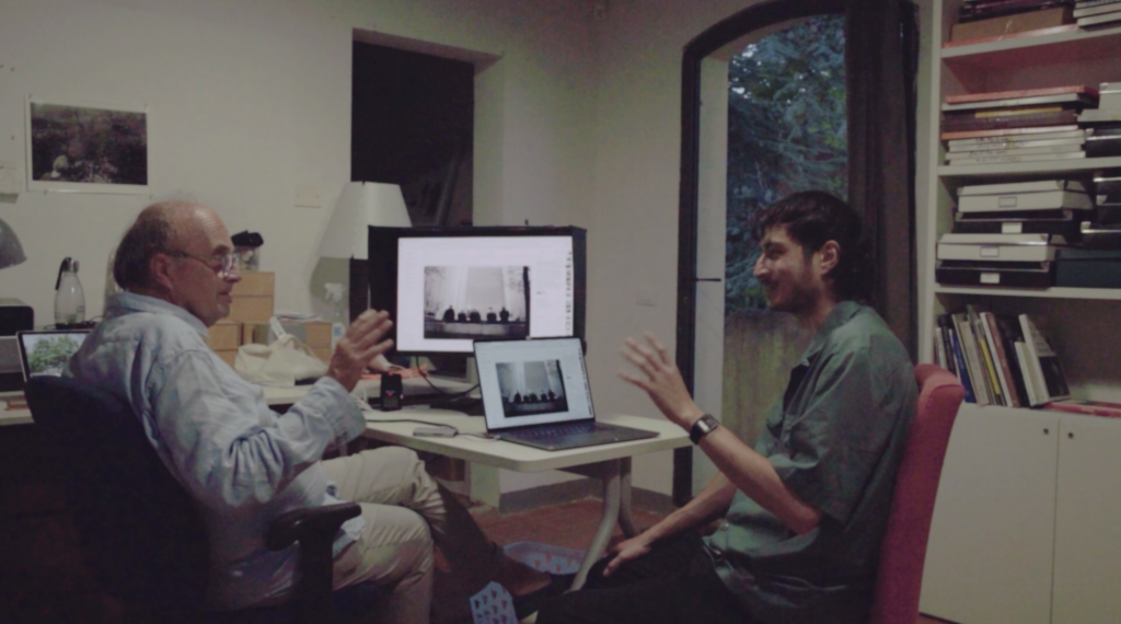 “I remember you helped me bring plants inside so that they could converse with the ones projected from outside, which I found extremely interesting…”. While the camera sat in the dark, we did the real work: chatting, eating, and enjoying Italian wine.