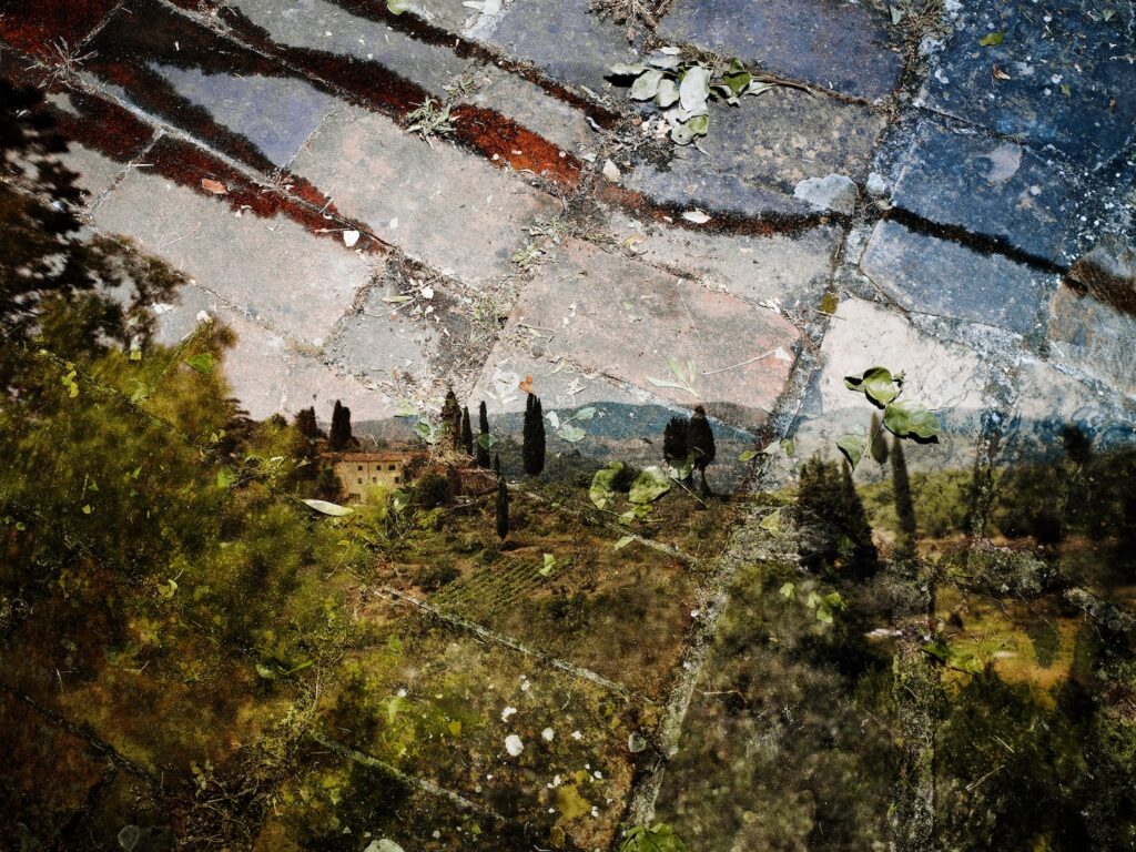 He took more in the following years. In one of his pictures you can see my living room, layered with the landscape. You can make out my partner Clare’s studio in another image, while another features a beautiful olive tree from my garden.