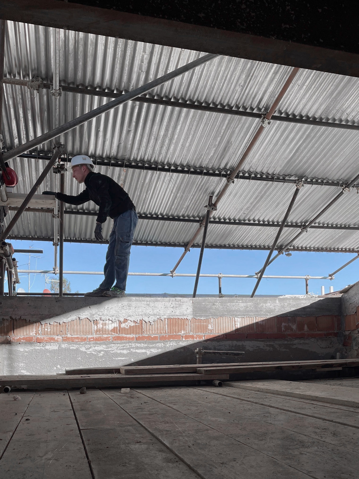 Construction sites are places of continuous change. The morphology of a site changes over days, weeks, and months. In numerous phases, layers are uncovered or covered over, walls are erected or torn down, floors are laid, pipes are installed and walls are plastered. A spatial order is created to incorporate the structures of the institute. However, a construction site also resembles a stage on which different players act and communicate with each other in a precisely defined chronological sequence following precise stage directions.
