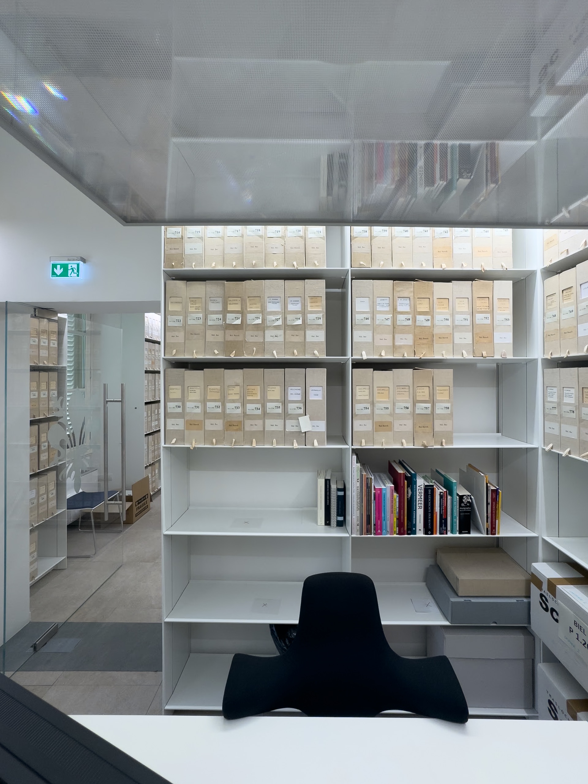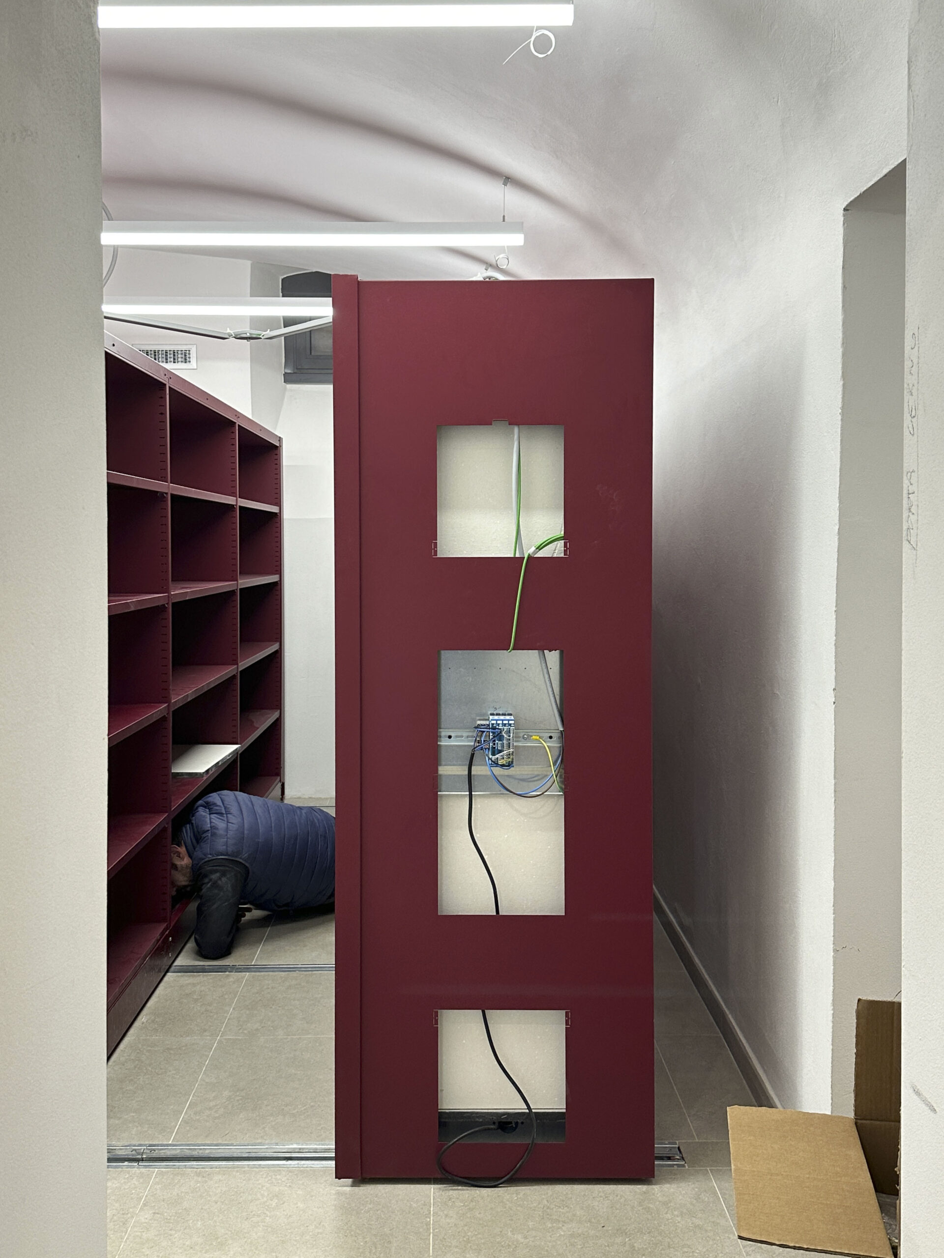 “Photographed from 2021 to 2024, this collection of images was taken during the renovation of the Kunsthistorisches Institut in Florenz’s new Photothek. I wanted to describe the space of the construction site by looking for those surfaces, materials and utensils that I found somewhat evocative” says Martino Marangoni. “People are also shapes, shadows in motion in a theatrical choreography. I focused my lens on the institute’s collection of books by observing the emptying of the shelves in the old location, the dust left behind, and the gradual filling of the brand new and very clean shelves in the new building”